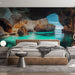 Dette Mural Tapet vækker en majestætisk havhule, hvor turkise farvande fletter sig sammen med imponerende klippeformationer. Naturligt lys filtrerer gennem åbningen og skaber et afslappende og beroligende rum, perfekt til en zen-ambiance i dit interiør.