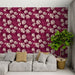 Denne tapet har et fængslende mønster af monstera blade i nuancer af pink og creme, der blomstrer mod en levende burgunder baggrund. Farvekombinationen skaber en varm og indbydende atmosfære samtidig med at tilføje et strejf af sofistikering til din indretningsstil.
