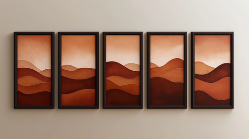 WonderMuralDette fototapet fremkalder et storslået stiliseret bjerglandskab, sammensat af varme nuancer fra beige til murstensrød. Bjergenes bølgende former s...