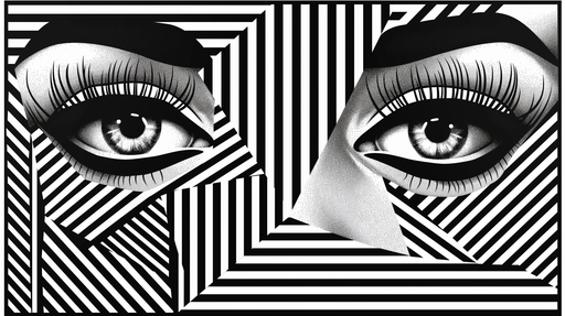 WonderMuralDette fængslende tapetmaleri Hypnotiske Øjne kombinerer sort-hvide geometriske linjer med fortryllende øjne, hvilket skaber en visuel effekt, der e...