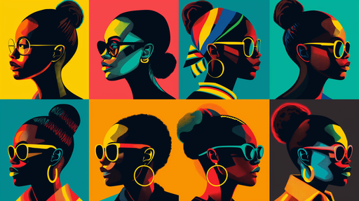 WonderMuralDenne tapet har en række levende portrætter, der bruger en fed og kontrasterende farvepalet. De stiliserede silhuetter af kvinder, med deres brille...