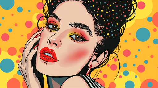 WonderMuralDette Pop Art Glamour tapet fanger perfekt den retro ånd med et moderne twist. Illustrationen viser et stiliseret kvindeligt ansigt med accentuered...