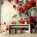 Dette tapet fremhæver et prægtigt mønster af røde roser, der er delikat arrangeret på en let, tekstureret baggrund. De rige, fløjlsagtige kronblade på blomsterne, kombineret med det grønne fra bladene, skaber en livlig og attraktiv visuel effekt, der vil oplyse ethvert rum.