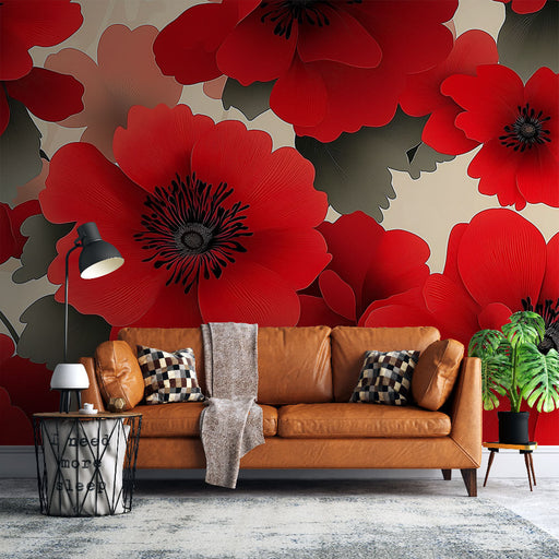 WonderMuralDenne forfine tapet har en livlig buket af røde og hvide anemoner, delikat illustreret på en blød pastelfarvet baggrund. De smukt detaljerede bloms...