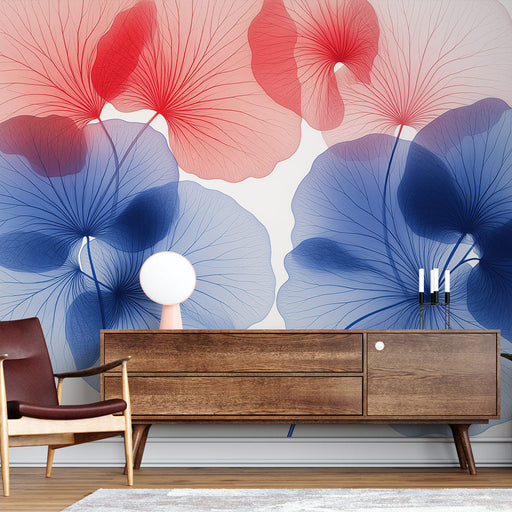 WonderMuralDette tapet har et storslået mønster af gennemsigtige blomster i nuancer af rød og blå, skaber en atmosfære, der er både raffineret og moderne. L...