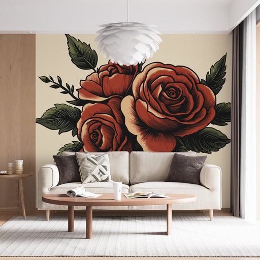 WonderMuralDenne tapetmaleri har et levende mønster af røde blomster på en cremefarvet baggrund, der skaber en varm og imødekommende atmosfære. De delikate de...