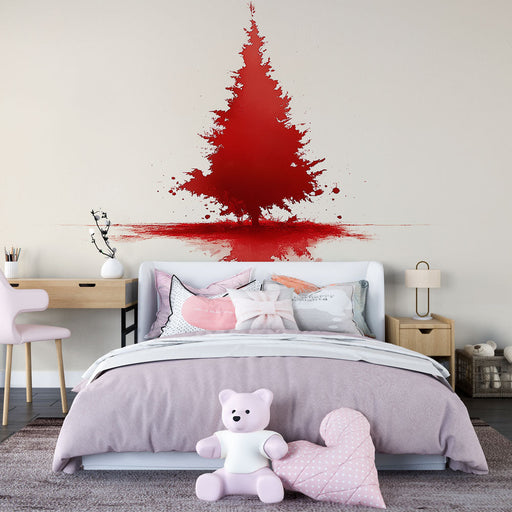 WonderMuralDette unikke tapet fremhæver en stiliseret juletræ i klare røde farver, skabt med akvarelstrøg, der tilføjer en kunstnerisk og moderne dimension ti...