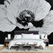 Fototapet stiliseret blomst | Hvid pæon på sort baggrund