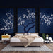 Fototapet vægmaleri | Hvid kirsebærgren på dybblå baggrund