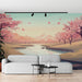 Vores Fototapet illustrerer et smukt forårslandskab, med en fredelig strøm, der snor sig gennem en fortryllende baggrund af kirsebærblomster. De bløde nuancer af lyserød, kombineret med beroligende antydninger af blå og grøn, skaber en rolig og forfriskende atmosfære, perfekt til at bringe et strejf af natur indendørs.