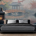 Dette tapetmaleri fremkalder en fortryllende zen-have, med en delikat træbro, der overser rolige vande spredt med kirsebærblomsterblade. Nuancerne af lyserød og grøn skaber en rolig og beroligende atmosfære, ideel til et meditationsrum eller en stue. De stenlygter tilføjer et strejf af tradition og varm belysning til designet.