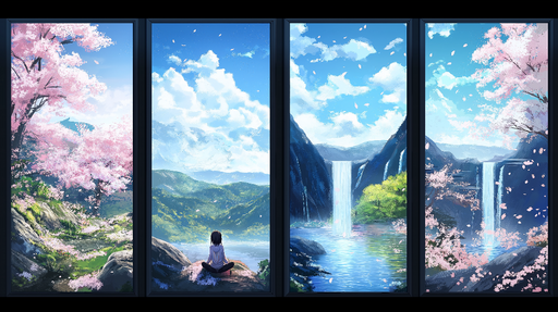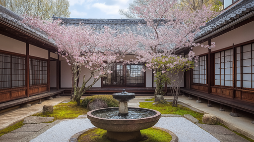 Se fulde detaljerTapet zen-have | Beroligende landskab med kirsebærblomster og springvand