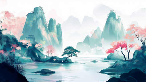 WonderMuralOplev vores tapet med en beroligende japansk landskab, med majestætiske bjerge og en blomstrende kirsebærtræ med delikate grene. De bløde toner af ...