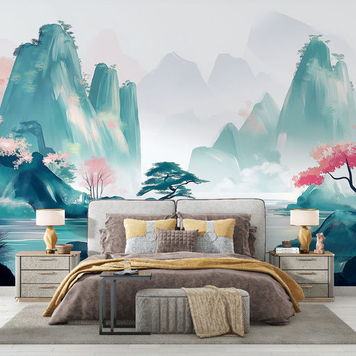 WonderMuralVores tapet vækker en fredelig japansk landskab, hvor majestætiske bjerge omgiver en rolig landsby. De kirsebærblomster tilføjer strejf af delikat ...