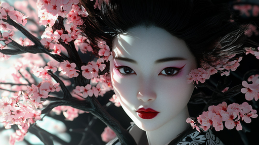 Art'loloFordyb dig i en verden af skønhed og ro med vores floral illustration fototapet, der har en elegant figur omgivet af lyserøde kirsebærblomster. Per...