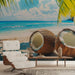 Fototapet kokosnoed | Åbne kokosnødder på en solrig tropisk strand