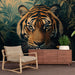 Tigeren, med sit gennemborende blik og karakteristiske stribede pels, skiller sig ud mod en mørk løvbaggrund, hvilket skaber en iøjnefaldende kontrast, der vil fange øjet. Dette design er perfekt til at tilføre en følelse af vildskab og elegance til interiører såsom stuer, kontorer eller endda soveværelser.