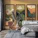 Sammensætningen i flere paneler skaber en dynamisk mural effekt, perfekt til at tilføje et strejf af autenticitet til dit interiør. Dette design harmoniserer ideelt med boheme, tropisk eller minimalistisk stilindretning og forvandler dit rum til en sand oase af fred.