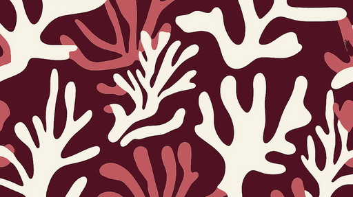 WonderMuralDette tapet har et abstrakt koraldesign i varme nuancer af lyserød og beige, på en dyb rød baggrund. De flydende og organiske former bringer en nat...