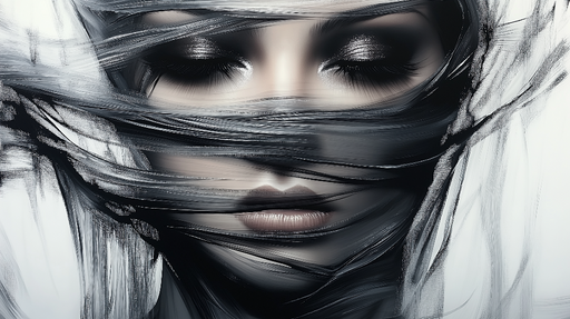 Se fulde detaljerTapet etereal | Mystisk ansigt indhyllet i abstrakte tråde