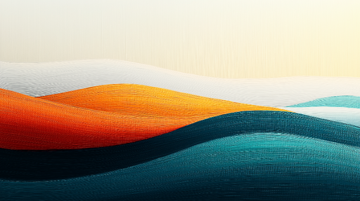 WonderMuralDette tapetmaleri har et fængslende abstrakt design, der illustrerer sammenflettede bølger af orange nuancer, turkisblå og hvid. De flydende tekstu...