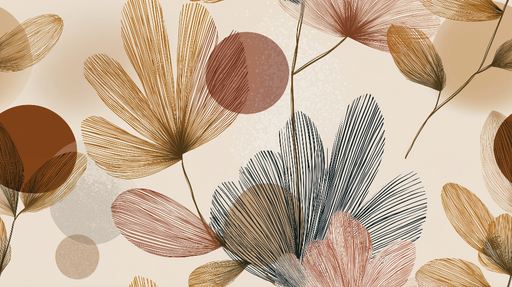 WonderMuralDenne tapet tilbyder et abstrakt blomsterdesign, der viser delikate blade i forskellige nuancer, såsom kobber og sorte nuancer, kombineret med farv...