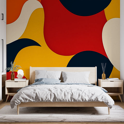 WonderMuralDette Mural Tapet tilbyder et abstrakt design fyldt med levende farver og geometriske former, der skaber en dynamisk og glædelig atmosfære i ethver...