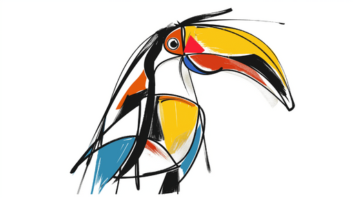 WonderMuralDenne tapet har en levende og dristig illustration af en stiliseret tukan, med udtryksfulde linjer og klare farver. Blokkene af gul, blå, orange og...