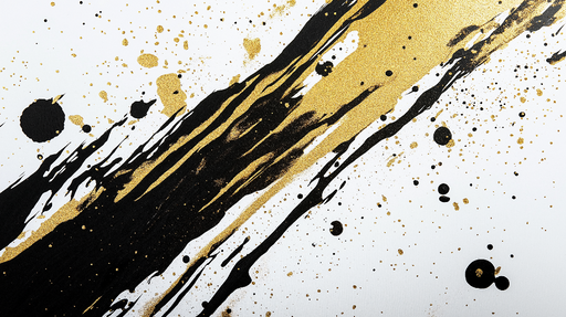 WonderMuralVores abstrakte fototapet fremviser et smukt spil af sort og guld farver på en hvid baggrund, der kombinerer stænk og dristige penselstrøg. De gyld...