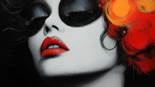 WonderMuralDette fængslende Tapet har ansigtet af en stiliseret kvinde, forstærket med levende farver som rød og orange. De dristige læber er accentueret af b...