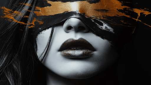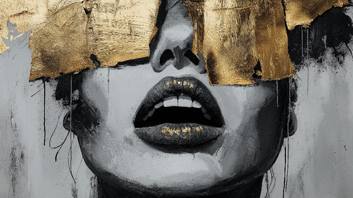 WonderMuralDette fængslende tapet har et stiliseret ansigt i sort og hvid, akkompagneret af gyldne strejf, der tilføjer dybde og en smule elegance. Kombinatio...
