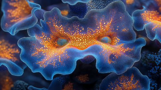 Se fulde detaljerFarverig koral fototapet | Organiske former på blå baggrund