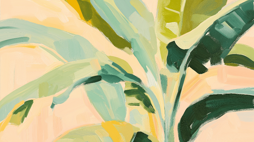 Se fulde detaljerFototapet abstrakt bananblad | Stiliserede blade i bløde og pastelfarver