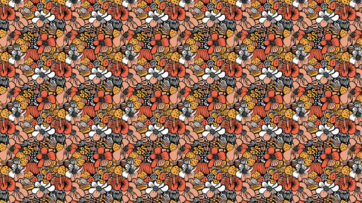 WonderMuralDenne tapet har et farverigt blomstermønster rig på teksturer og nuancer, der kombinerer levende røde, orange og hvide blomster på en sort baggrund...