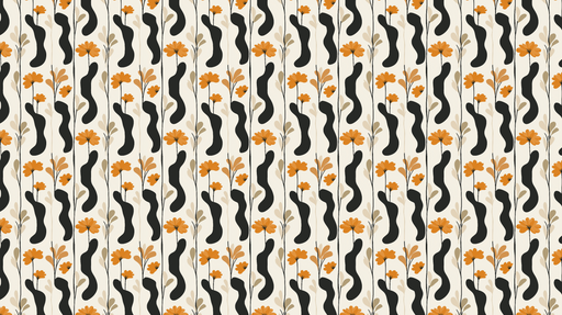 WonderMuralDenne tapet har et moderne og dynamisk design, der kombinerer mønstre af orange blomster og flydende sorte former på en cremefarvet baggrund. De li...