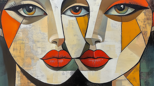 WonderMuralOplev vores tapet med abstrakte mønstre inspireret af stiliserede kvindelige ansigter, der fremhæver livlige nuancer som rød, orange og gul, kontra...