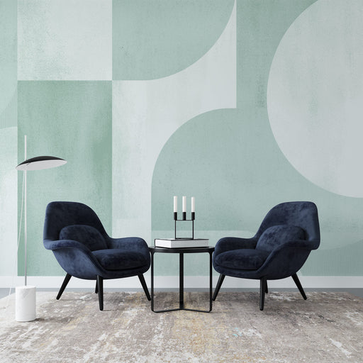 WonderMuralVores tapet har et fascinerende abstrakt mønster bestående af forskellige geometriske former i nuancer af blød grøn. Buen, cirklerne og de forhøjed...