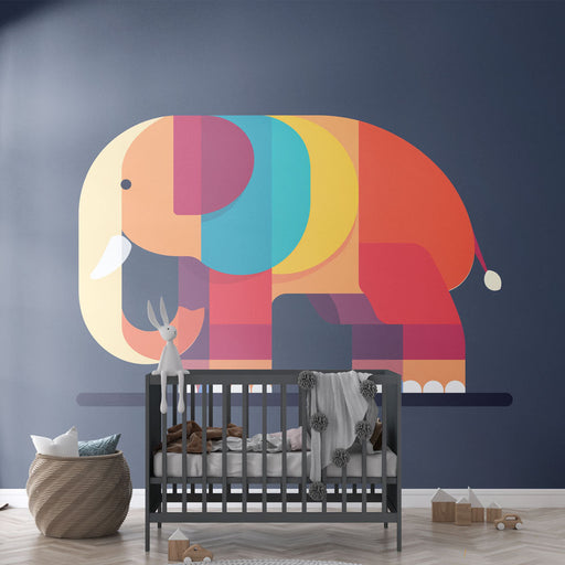 Se fulde detaljerFototapet farverig elefant | Elegant stiliseret elefant med geometriske former og klare farver