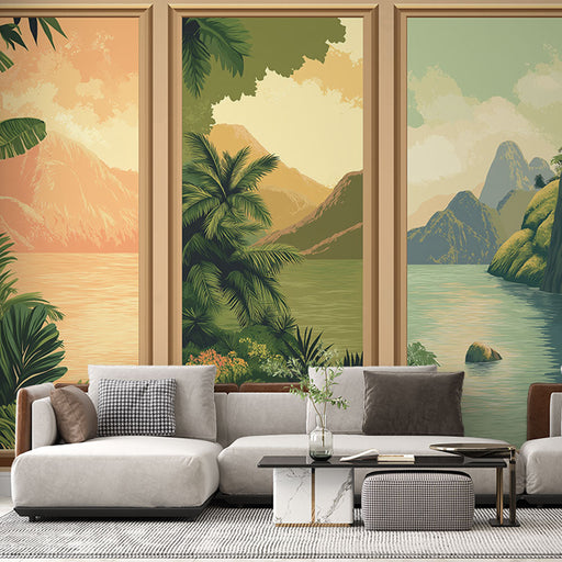 WonderMuralVores fototapet har en tropisk indretning i fire paneler, hvert kunstværk illustrerer fortryllende landskaber. De varme og kølige nuancer af nature...