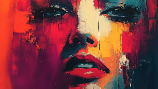 WonderMuralDette fængslende tapetmaleri har et stiliseret kvindeligt ansigt omgivet af dristige penselstrøg og livlige nuancer, der skaber en kunstnerisk og m...