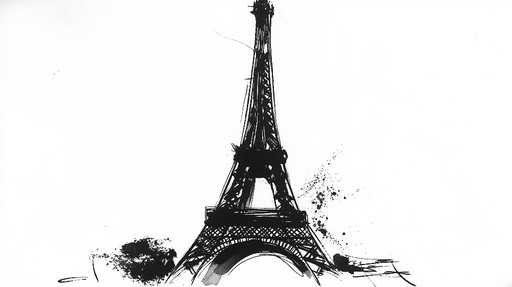 WonderMuralDette fængslende tapetmaleri har en stiliseret illustration af Eiffeltårnet, tegnet i sort og hvid med blækstreger. Kunstneren brugte flydende form...