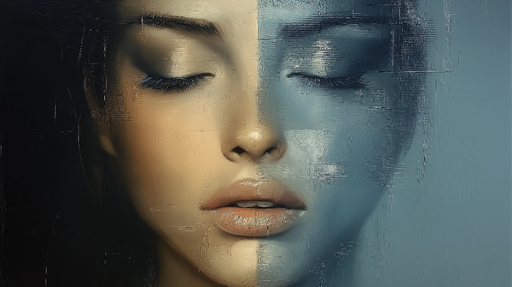 Se fulde detaljerTapet kunstnerisk ansigt | Nutidigt portræt med kontrasterende nuancer
