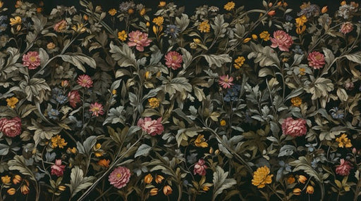 WonderMuralTransformér dit interiør til et tidløst kunstgalleri med vores vintage blomstermural tapet , der har en neutral blomstermural på en sort baggrund....