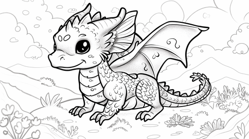 WonderMuralDette tapet illustrerer en elskelig lille drage med et skælmsk smil og funklende skæl. Dragten står i et malerisk landskab med rullende bakker og s...