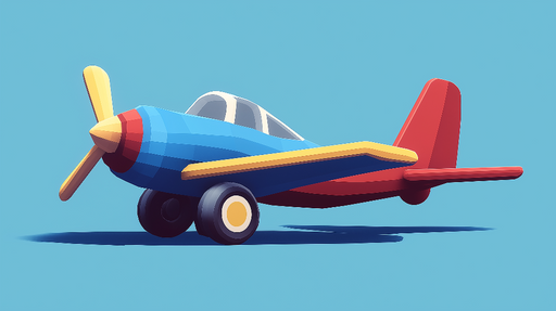 WonderMuralDette tapetmaleri med et retro fly design bringer en glad og eventyrlig stemning. Illustrationen har et blåt og rødt fly med gule detaljer, der stå...