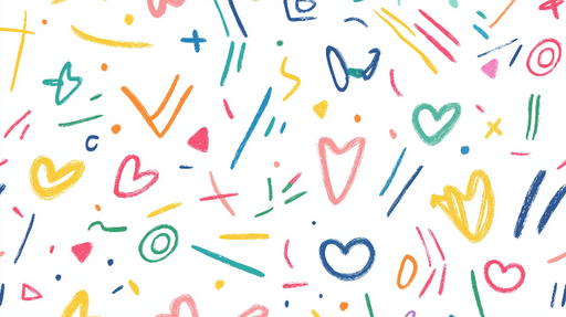 WonderMuralDette tapetmaleri har et levende og legende design med farverige mønstre, herunder hjerter, linjer og geometriske former, perfekt til et børneværel...