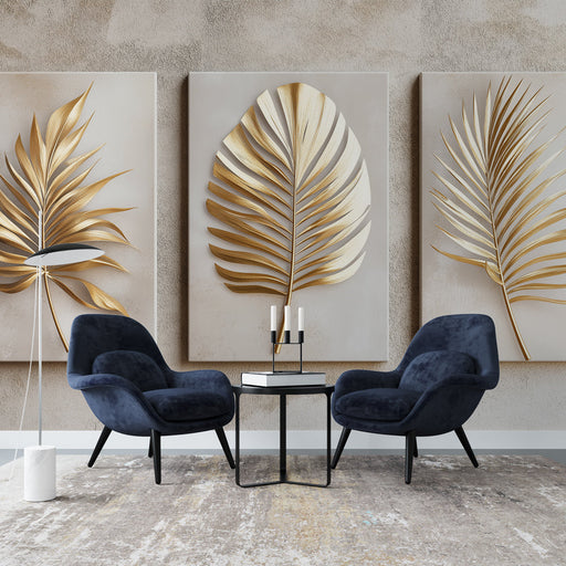 WonderMuralDette Tapet har et elegant design med gyldne palmeblade, der tilføjer en luksuriøs touch til ethvert rum. Deres delikate teksturer og gyldne nuance...