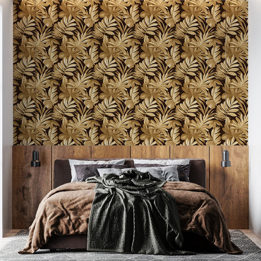 WonderMuralVores premium fototapet har gyldne eksotiske blade, der bringer en touch af luksus og elegance til ethvert rum. Det rige, teksturerede mønster, ko...