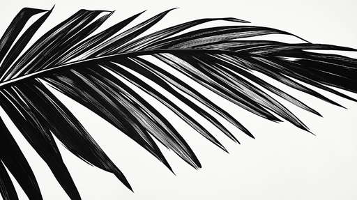 WonderMuralDette tapet tilbyder en minimalistisk og elegant illustration med et stort sort palmeblad, der skiller sig ud mod en ren hvid baggrund. De præcise ...