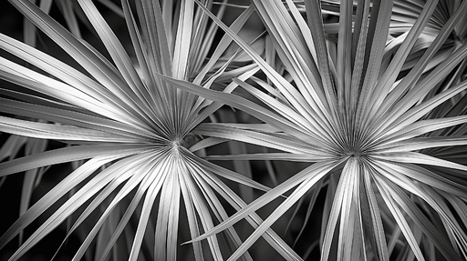 Se fulde detaljerSort-hvidt løv fototapet | Panoramiske palmeblade